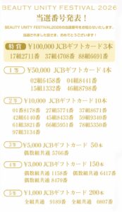 BEAUTY UNITY FESTIVAL2026当選番号が発表されました
